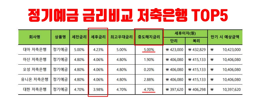 정기예금 금리비교 TOP5 저축은행(2023년 2월 기준)